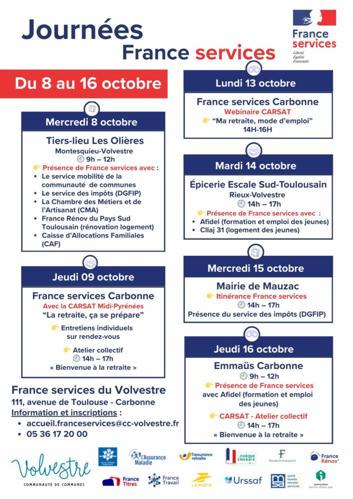 Du 8 au 16 octobre, France services et ses partenaires vous donnent rendez-vous pour une semaine d’information, de conseils et d’accompagnement sur de nombreux thèmes du quotidien : retraite, mobilité, rénovation de l’habitat, accompagnement social et bien plus encore.