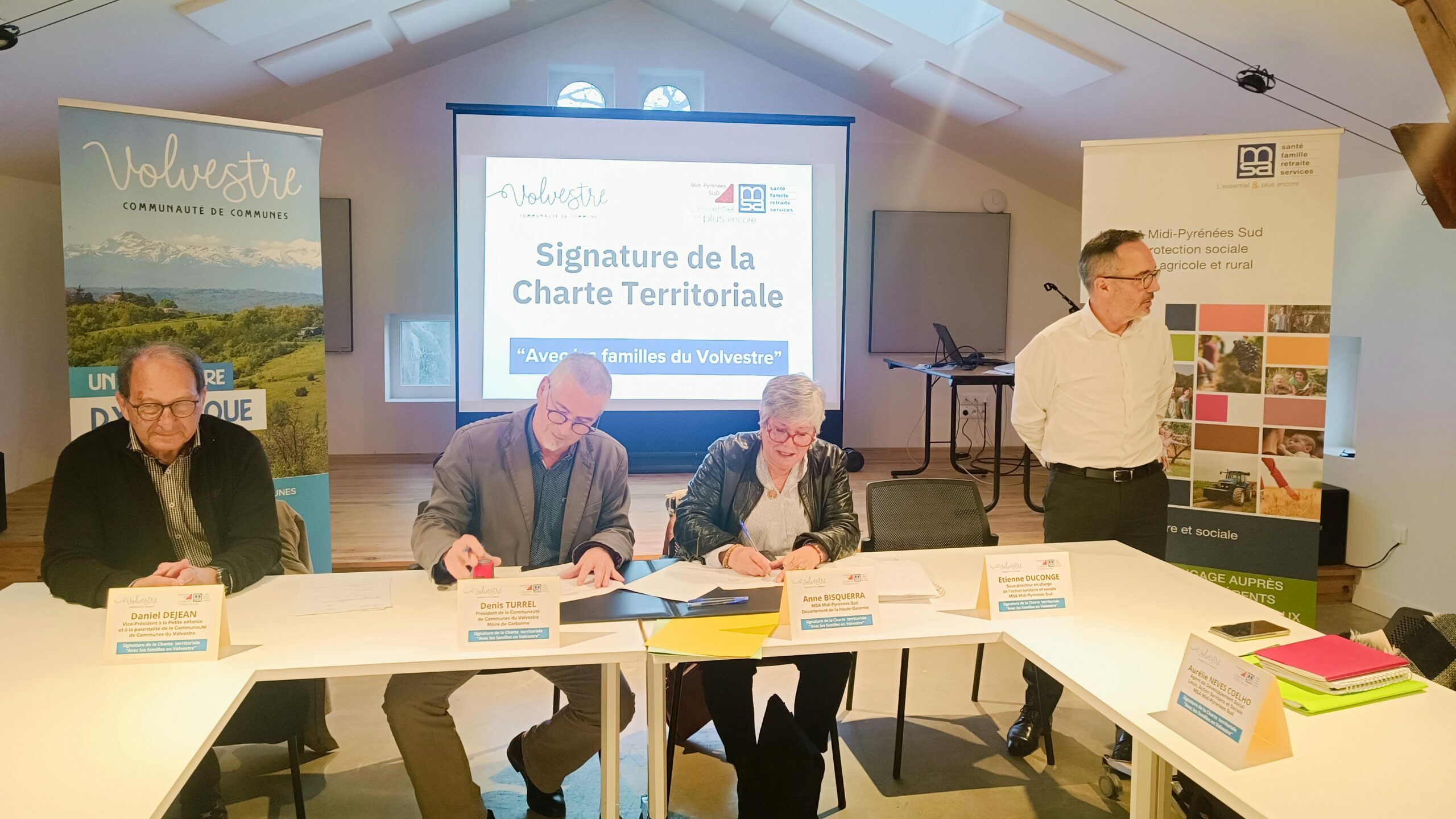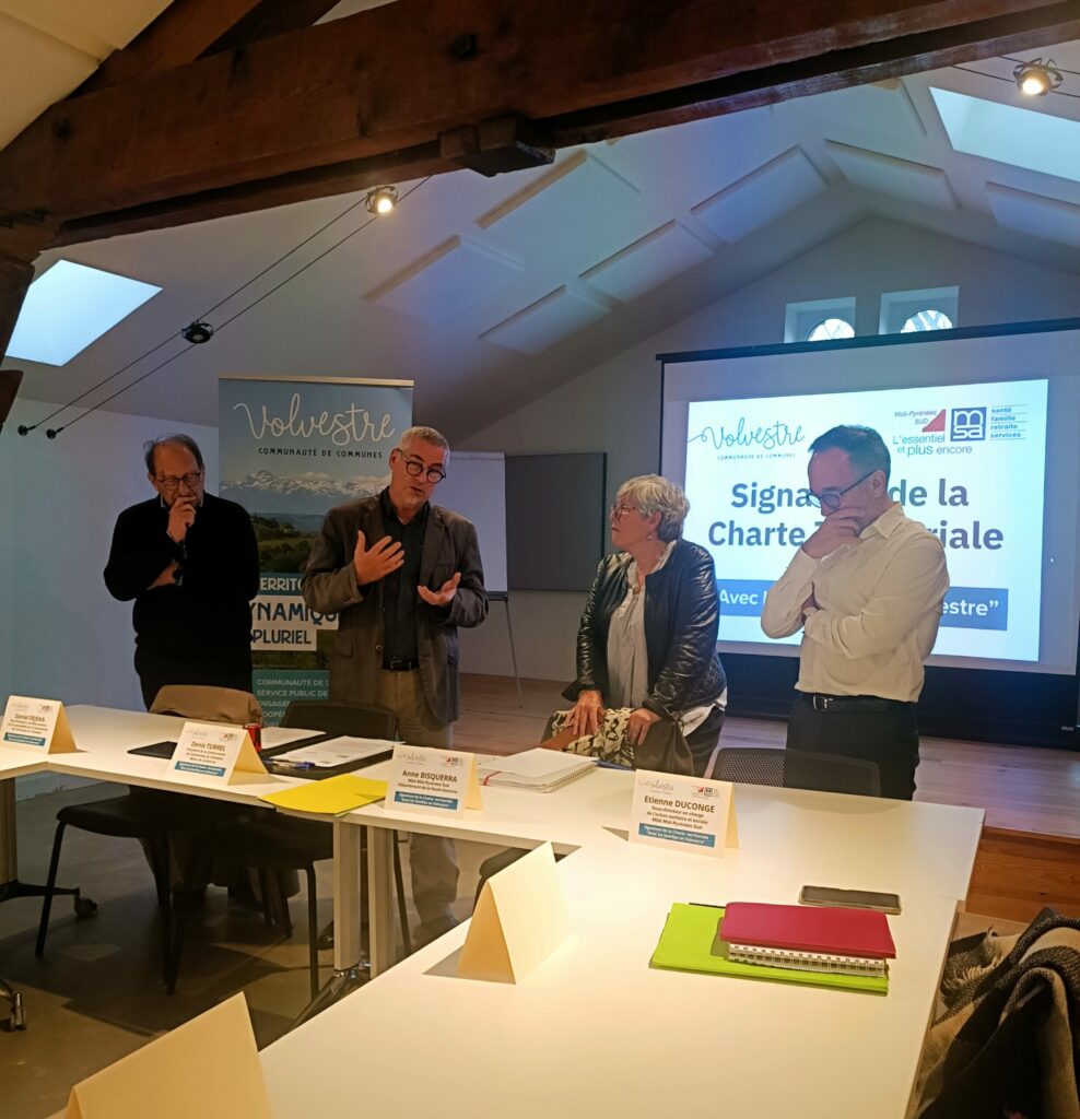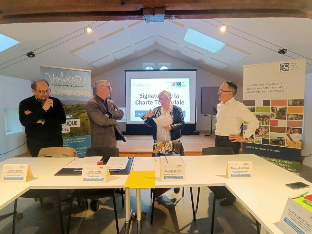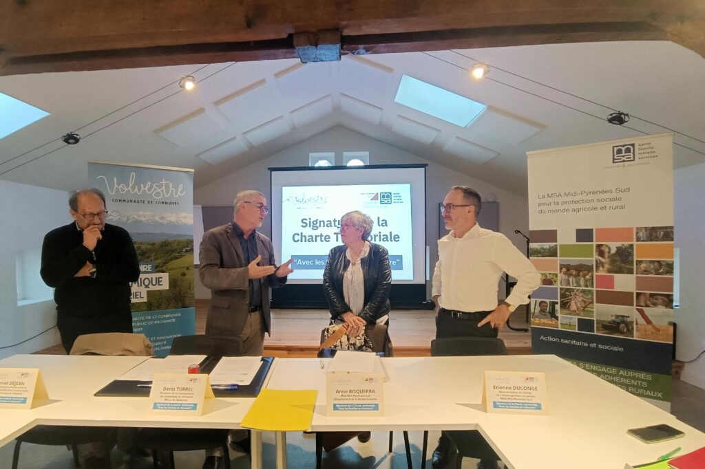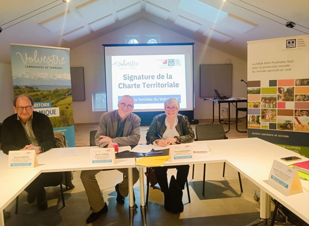 Dans le cadre de leur engagement commun en faveur des familles, la Communauté de Communes du Volvestre, représentée par son président Denis Turrel, et la MSA MPS, représentée par Mme Anne Bisquerra, élue MSA pour le département de la Haute-Garonne, ont signé le 13 novembre un accord de partenariat au travers de la Charte territoriale « Avec les familles ».