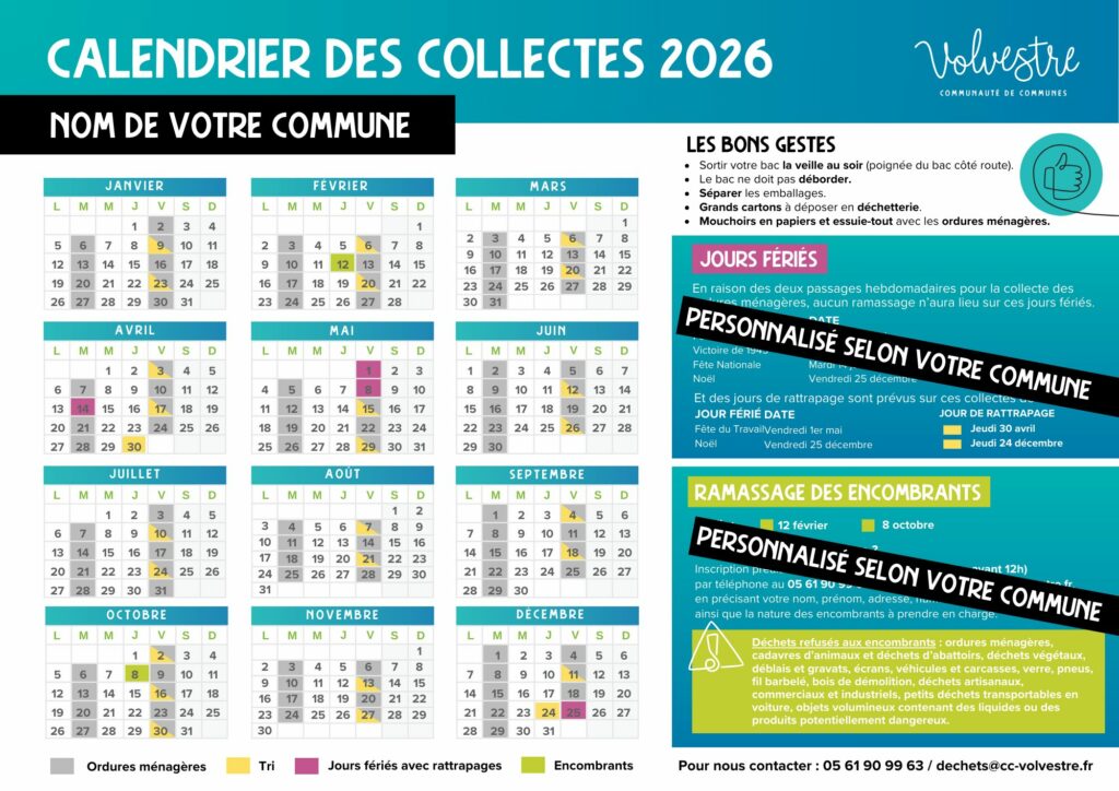 Les calendriers de collecte des déchets pour l’année 2026 sont désormais disponibles sur notre site internet. Un calendrier “tout-en-un”, simple et pratique, est proposé pour chaque commune (ou par secteurs pour certaines), afin de vous accompagner tout au long de l’année.