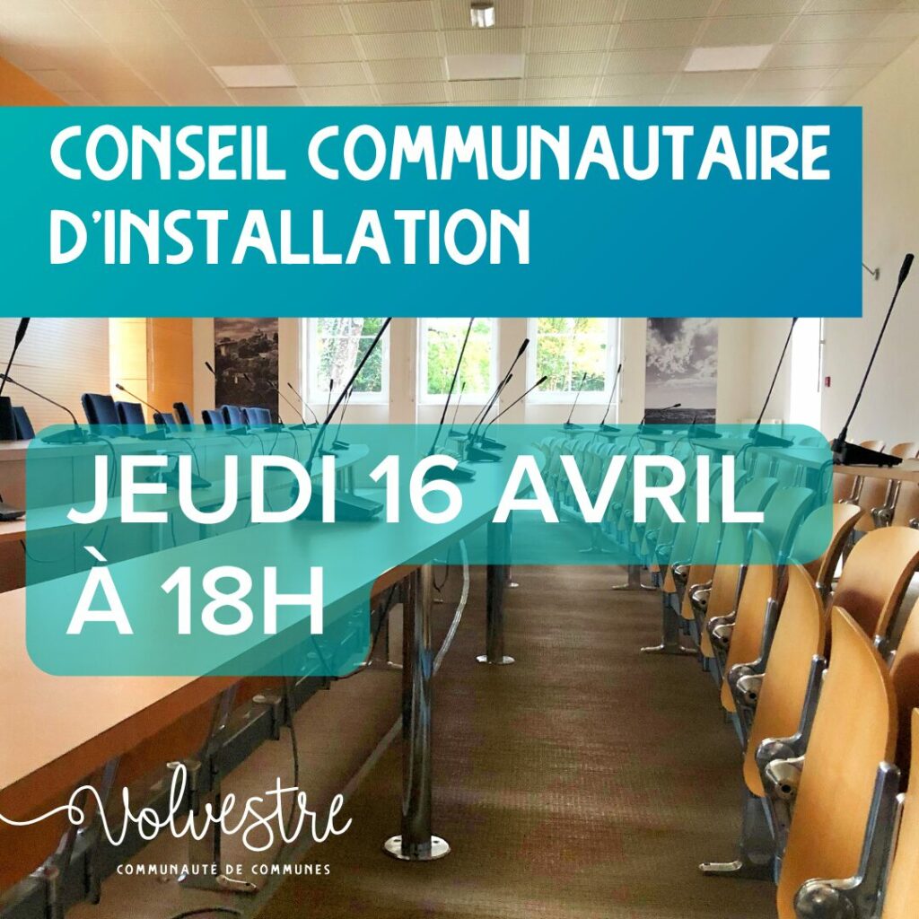 Le Conseil communautaire de la Communauté de Communes du Volvestre se réunira le jeudi 16 avril 2026 à 18h pour sa séance d’installation, réunissant les 60 élus communautaires désignés à l’issue des élections municipales des 15 et 22 mars derniers.