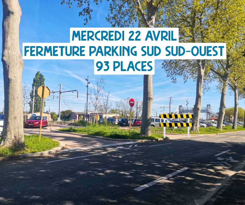 ➡️ Fermeture du parking Sud / Sud-Ouest (93 places)