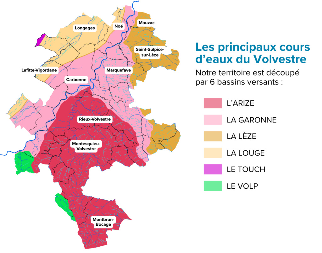 Le Syndicat Rivières Salat Volp (SSV), créé en 2000, gère un territoire de 1 700 km² et plus de 2 600 km de cours d’eau, dont les principaux sont le Salat et le Volp.