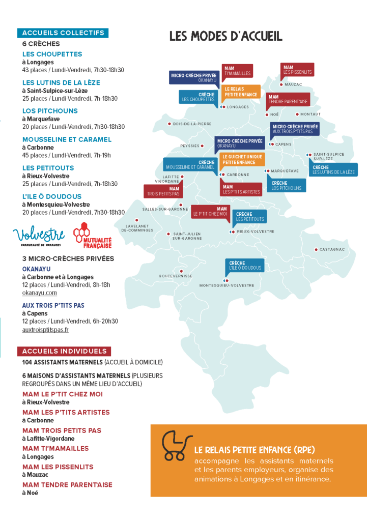 - Des informations complètes : découvrez les différents modes d’accueil disponibles dans le Volvestre.